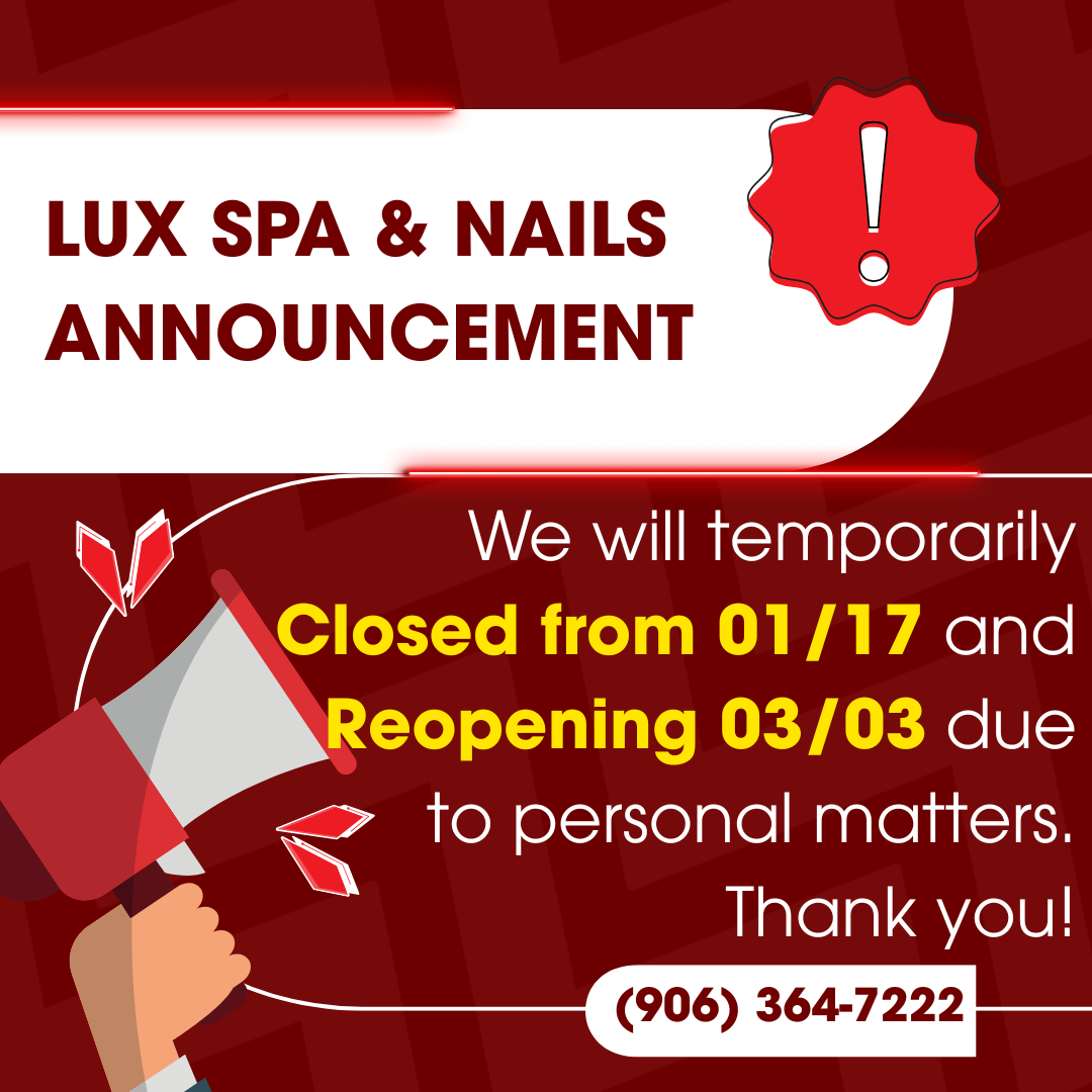 Welcome to LUX SPA & NAILS ! We are a team of qualified and experienced nail technicians with a talent for nail and beauty care. Located at 1432 E Cloverland Dr, Ironwood, MI 49938. You can find us easily and get your nail care services done perfectly and without much hassle. Our specialties in the salon are Waxing, Pedicure Shellac, Nails Shellac . For your complete convenience and safety, we run a 100% sanitary salon. Make your appointment with us at (906)-285-7240 and pamper your body to a relaxing spa day ! We hope to see you soon !